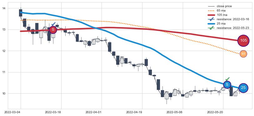⚃ 在突破点附近ma走势明显平稳迹象,稍后的走势中ma上翘迹象也出现,信号【可信度中等偏上】