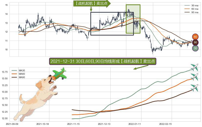 ⚀ 2021-11-08日-2022-03-04日显现 30日-60日-90日均线 【战机起航】卖出点 看空信号,后市看跌,卖出