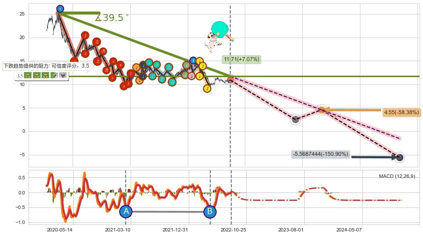 ♘ 在最后的下跌阶段2020-02-27至2022-06-14,存在 持续未破位的阻力位 ,阻力价格11.71,可信任强度80.70%,其距离最后价格10.94相差 +7.07%