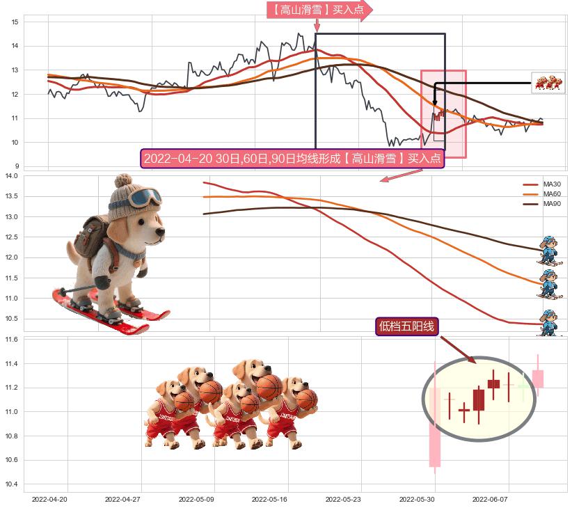 | 2 🅚:两红夹一黑 ➕ 🎢:【高山滑雪】买入点均线组合买入点信号形成后,猜想后续下行结束,持续反弹上涨(均值回复) ☞ 看多信号 ⇥ 【均线】交织【🅚线】⇥ 综合量化分数: 52 | > |