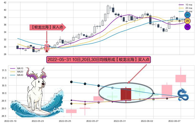 形态多维评估: ⚀ 2022-05-31日显现 10日-20日-30日均线 【蛟龙出海】买入点 看多信号,后市看涨,买入