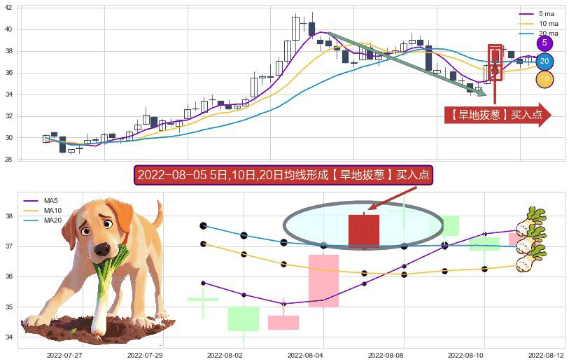 形态多维评估: ⚀ 2022-08-05日显现 5日-10日-20日均线 【旱地拔葱】买入点 看多信号,后市看涨,买入
