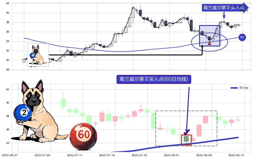 形态多维评估: ⚀ 2022-08-02-日显现 葛兰威尔均线 60日均线 第②买入点 上升趋势的中继信号,后市看涨,买进信号