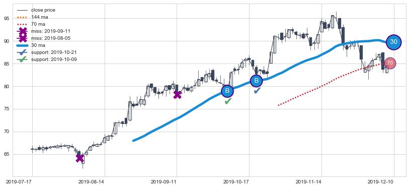 上涨趋势2019-07-17-2019-12-10,均线30确认关键支撑2处