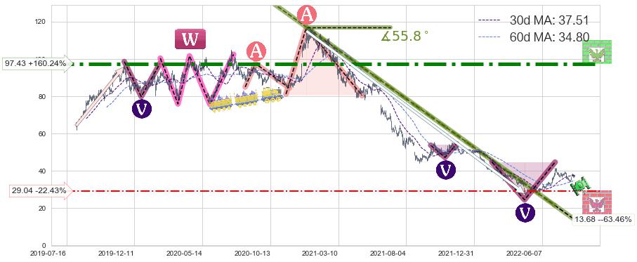 ♘ 支撑价格位29.04,可信任强度54.75%,距离最后交易2022-08-12形成的收盘价格37.44相差 -22.43%