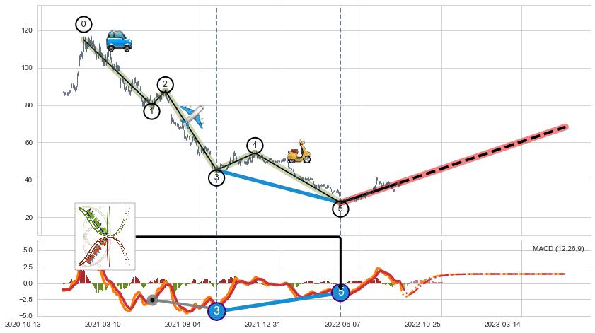 | 6 🅚:【高山滑雪】买入点 ➕ 🌊:波浪理论猜想下跌浪5已形成,猜想后续形成abc反弹上涨(均值回复) ☞ 看多信号 ⇥ 【均线】交织【图形】⇥ 综合量化分数: 52 | > |