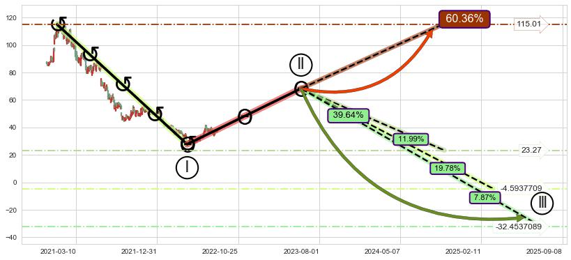 ➢ 高概率大级别循环下跌浪被破坏,反转向上(突破5浪起点)概率60.36%