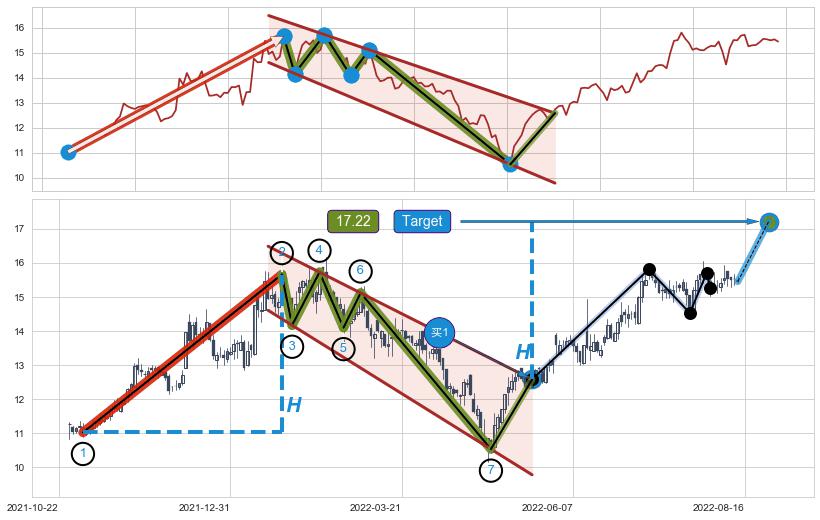➣ 最小中继整理涨幅→𝐇: 4.64 (𝐇旗杆的长度:旗杆起点→顶点)