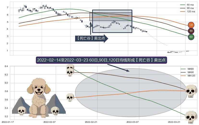形态多维评估: ⚀ 2022-02-15-日至2022-03-23-日显现 60日-90日-120日均线 【死亡谷】卖出点 看空信号,后市看跌,卖出