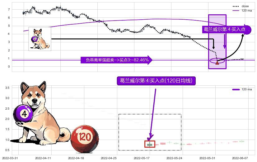 形态多维评估: ⚀ 2022-05-17-日显现 葛兰威尔均线 120日均线 第④买入点 下降趋势均值回复的短线反弹信号,后市看涨,买进信号