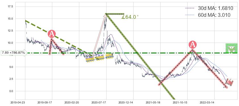 ♘ 阻力价格位7.89,可信任强度62.96%,距离最后交易2022-06-07形成的收盘价格0.8900相差 +786.87%