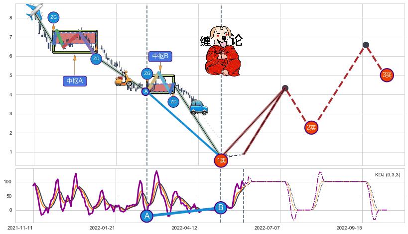 | 4 🅚:【高山滑雪】买入点 ➕ ☯️:缠论买卖点下降缠中枢AB形成后猜想拐点1买已到达,猜想后续持续拉升(均值回复) ☞ 看多信号 ⇥ 【均线】交织【图形】⇥ 综合量化分数: 52 | > |