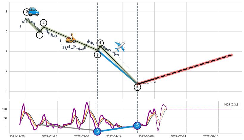 | 2 🅚:【高山滑雪】买入点 ➕ 🌊:波浪理论猜想下跌浪5已形成,猜想后续形成abc反弹上涨(均值回复) ☞ 看多信号 ⇥ 【均线】交织【图形】⇥ 综合量化分数: 52 | > |