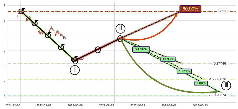 ➣ 循环浪继续向下【平均值】位置(2023-03-02, -1.7975876),匹配聚类样本比例49.90%, 可能性概率19.51%