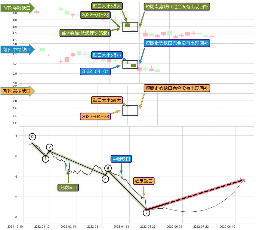 ➢ 2022-04-28形成:向下跳空【竭尽】缺口