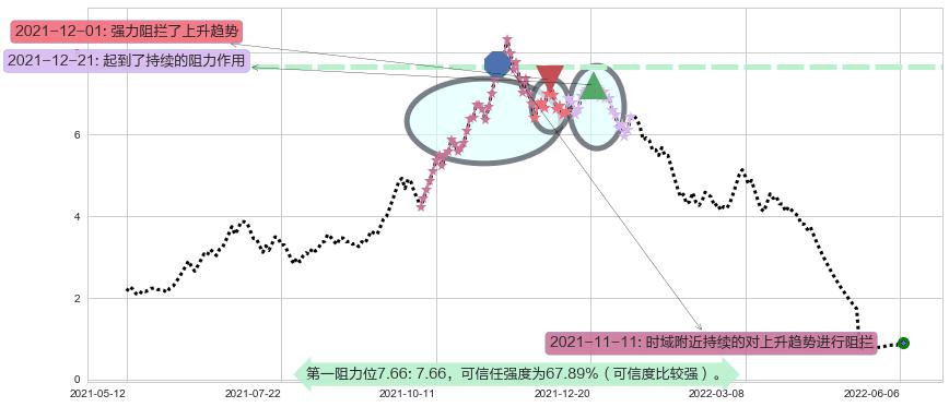 ♘ 阻力价格位7.66,可信任强度67.89%,距离最后交易2022-06-07形成的收盘价格0.8900相差 +760.82%