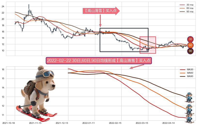 形态多维评估: ⚀ 2021-12-13日-2022-04-27日显现 30日-60日-90日均线 【高山滑雪】买入点 看多信号,后市看涨,买入