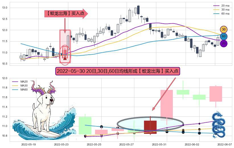 形态多维评估: ⚀ 2022-05-30日显现 20日-30日-60日均线 【蛟龙出海】买入点 看多信号,后市看涨,买入