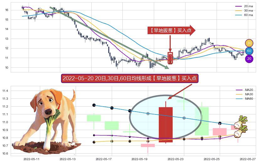 形态多维评估: ⚀ 2022-05-20日显现 20日-30日-60日均线 【旱地拔葱】买入点 看多信号,后市看涨,买入