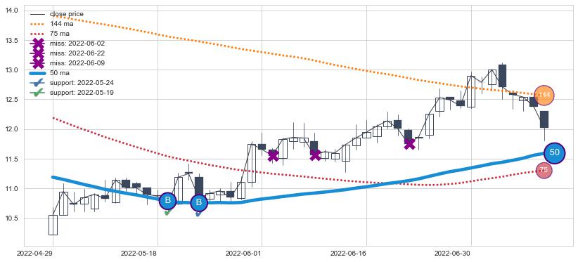 上涨趋势2022-04-29-2022-07-11,均线50确认关键支撑2处