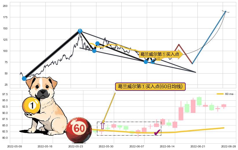 ➢ 【买1】: 激进型 买点 →(2022-05-26: 82.29 )形成突破降🚩楔型【整理】形态