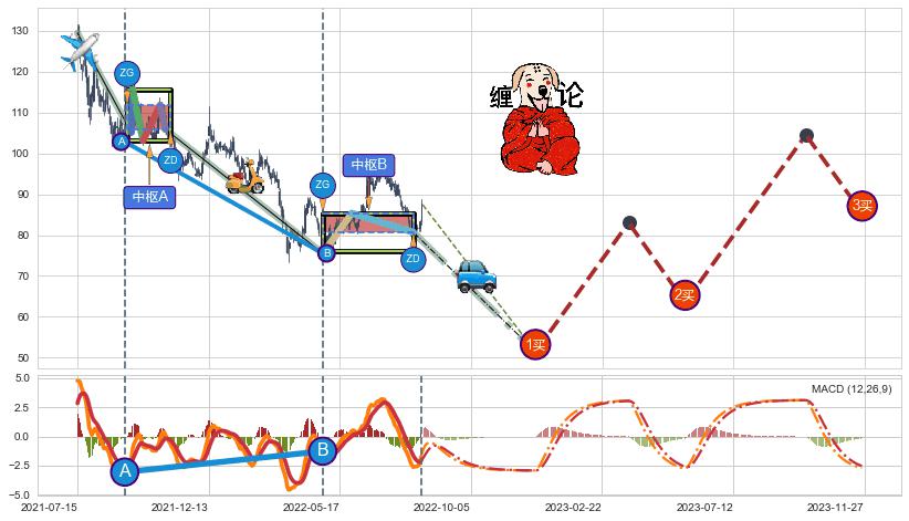 ➣ 【未完成】缠论 起点:2021-07-15, 完成第1中枢A,完成第2中枢B,到达2022-08-12