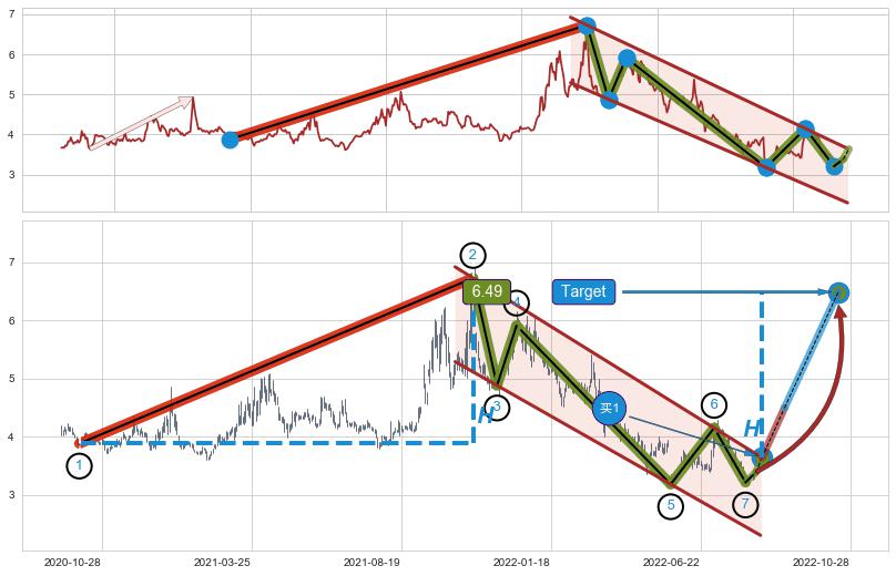 ➣ 最小中继整理涨幅→𝐇: 2.850 (𝐇旗杆的长度:旗杆起点→顶点)