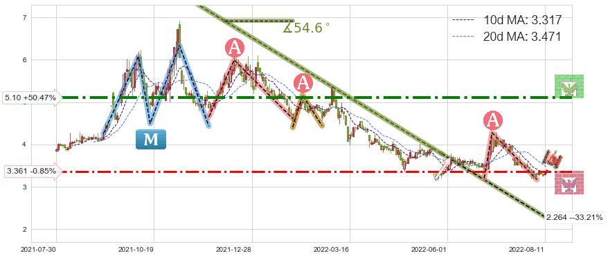 ♘ 支撑价格位3.361,可信任强度69.45%,距离最后交易2022-08-12形成的收盘价格3.390相差 -0.85%