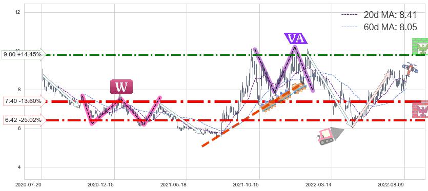 ♘ 支撑价格位7.40,可信任强度86.32%,距离最后交易2022-08-12形成的收盘价格8.56相差 -13.60%