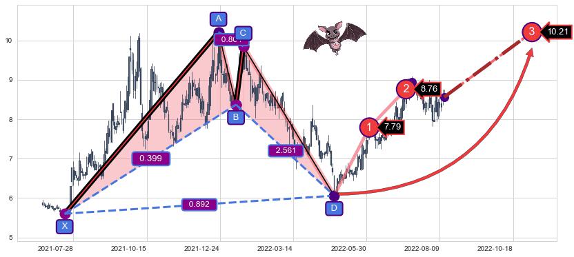 ➣ 已完成【蝙蝠】形态起点X: 2021-07-20, 终点D: 2022-04-25, 共185交易日