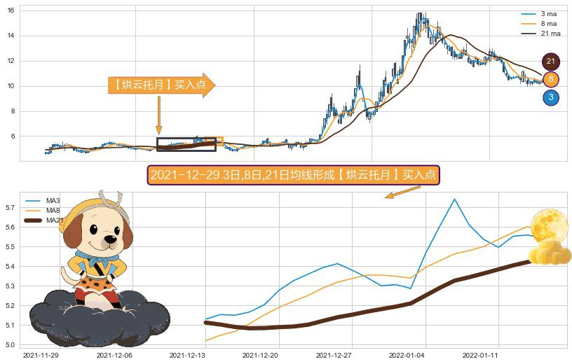 ⚀ 2021-12-13日-2022-01-14日显现 3日-8日-21日均线 【烘云托月】买入点 看多信号,后市看涨,买入