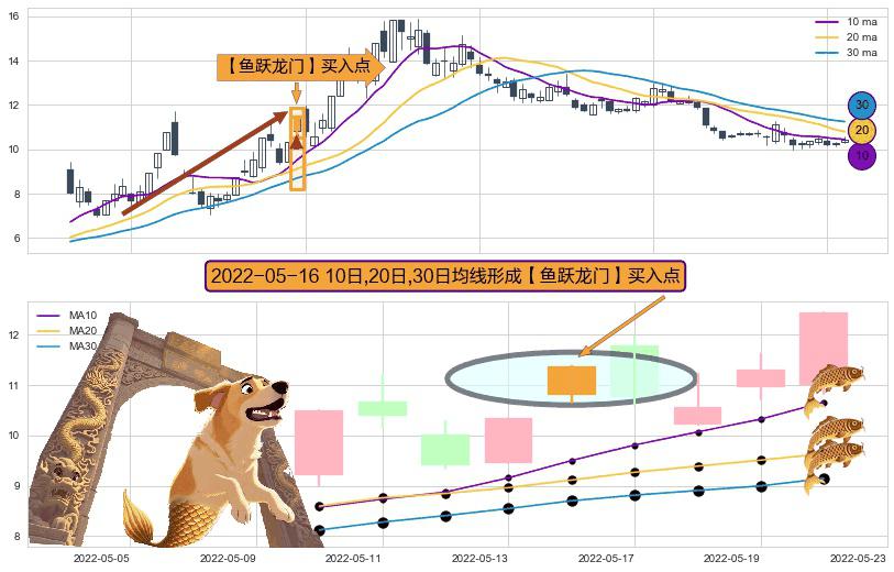 ⚀ 2022-05-16日显现 10日-20日-30日均线 【鱼跃龙门】买入点 看多信号,后市看涨,买入