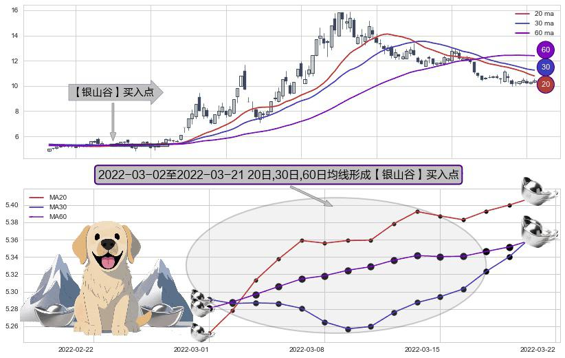⚀ 2022-03-03-日至2022-03-21-日显现 20日-30日-60日均线 【银山谷】买入点 看多信号,后市看涨,买入