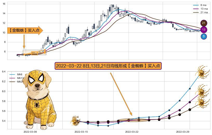 ⚀ 2022-03-22日显现 8日-13日-21日均线 【金蜘蛛】买入点 看多信号,后市看涨,买入