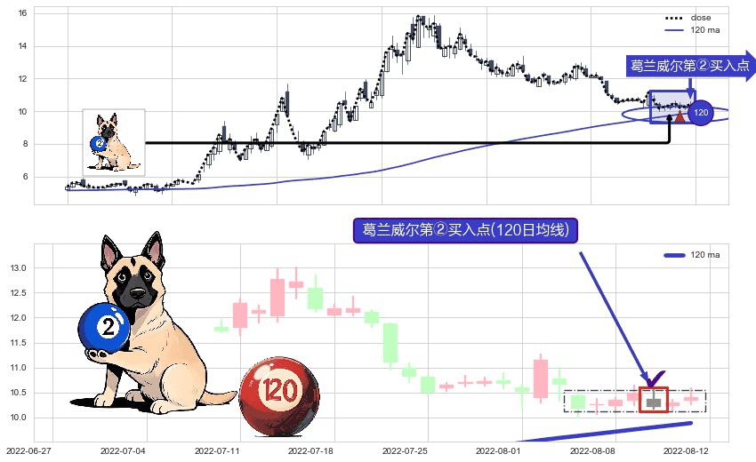 ⚀ 2022-08-10-日显现 葛兰威尔均线 120日均线 第②买入点 上升趋势的中继信号,后市看涨,买进信号