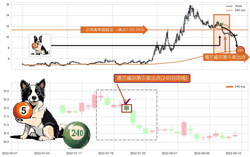 ⚀ 2022-07-20-日显现 葛兰威尔均线 240日均线 第⑤卖出点 上升趋势均值回复的短线回落信号,后市看跌,卖出信号