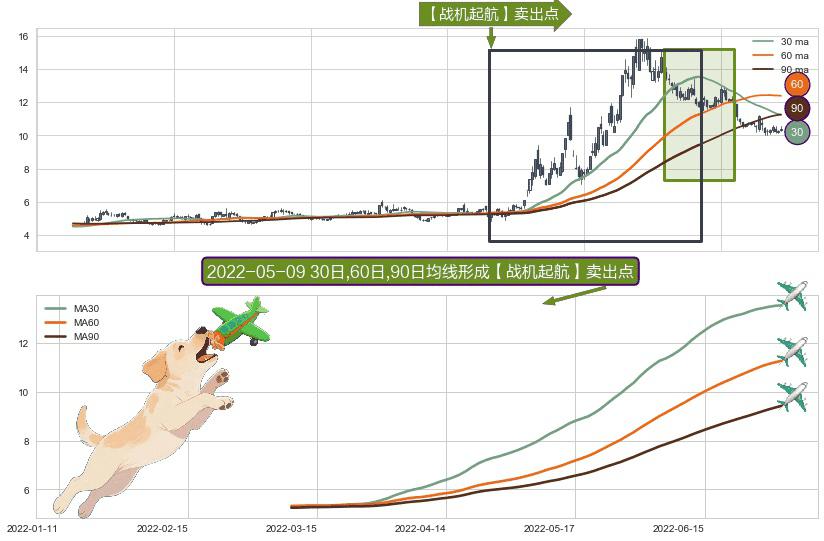 ⚀ 2022-03-09日-2022-07-01日显现 30日-60日-90日均线 【战机起航】卖出点 看空信号,后市看跌,卖出