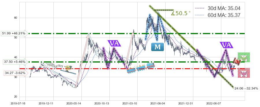 ♘ 阻力价格位37.50,可信任强度82.47%,距离最后交易2022-08-12形成的收盘价格35.56相差 +5.46%