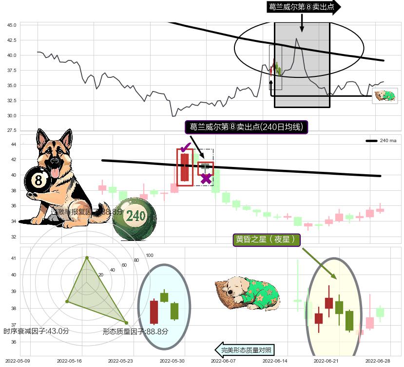 | 2 🅚:下跌两颗星 | 下跌三颗星 ➕ 🎢:葛兰威尔第⑧卖出点卖出点信号形成后,猜想后续持续下行(趋势跟踪) ☞ 看空信号 ⇥ 【均线】交织【🅚线】⇥ 综合量化分数: 49 | > |