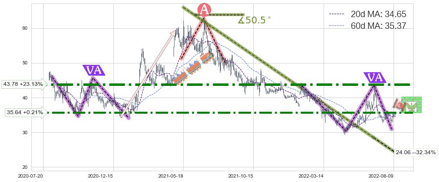➢ 【已确认突破】最后价格:35.56与最小【整理】第一目标价格→(2022-09-16: 58.71 )相较: 上涨空间【较大】