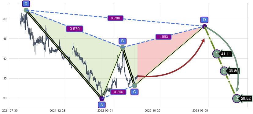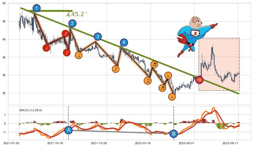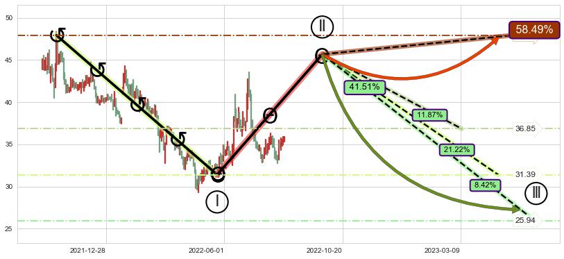 ➣ D点拟合预测价格48.09,距离最后交易收盘价格35.56相差 +35.23%