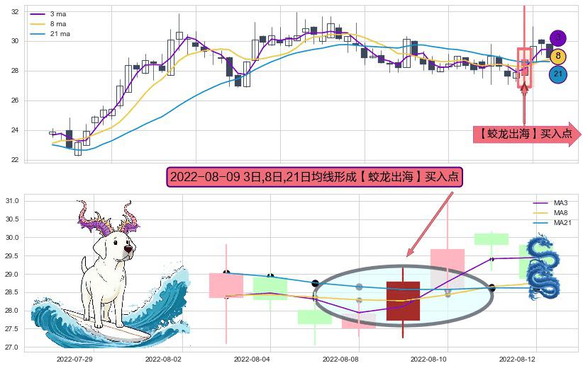 ⚀ 2022-08-09日显现 3日-8日-21日均线 【蛟龙出海】买入点 看多信号,后市看涨,买入