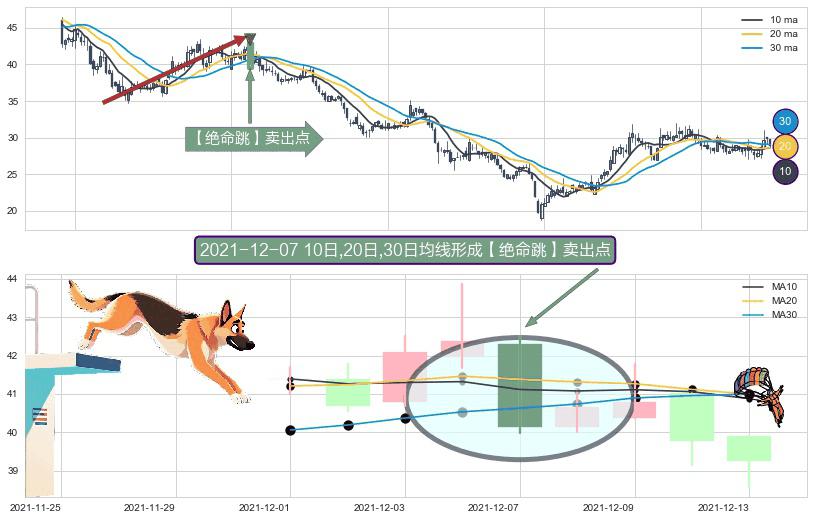 ⚀ 2021-12-07日显现 10日-20日-30日均线 【绝命跳】卖出点 看空信号,后市看跌,卖出