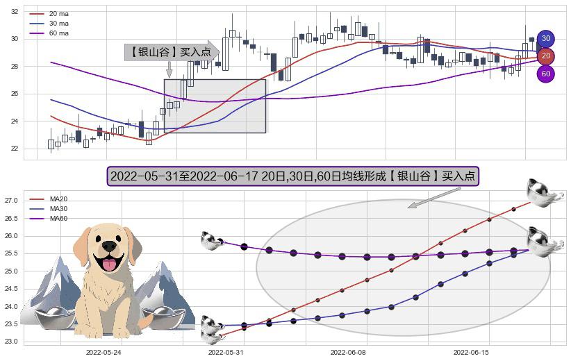 ⚀ 2022-06-01-日至2022-06-17-日显现 20日-30日-60日均线 【银山谷】买入点 看多信号,后市看涨,买入