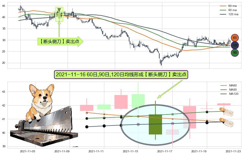 ⚀ 2021-11-16日显现 60日-90日-120日均线 【断头铡刀】卖出点 看空信号,后市看跌,卖出