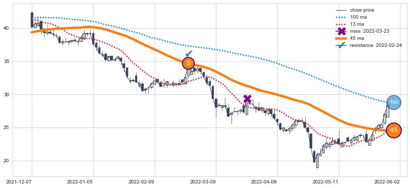 | 🎢︎+ 二级组合:【看多信号】:葛兰威尔第③买入点 ➕ 降旗形向上突破击穿阻力位, 猜想持续拉升上涨,被突破的阻力位已变为支撑位更多详情 → 👉点击跳转相关 | > |