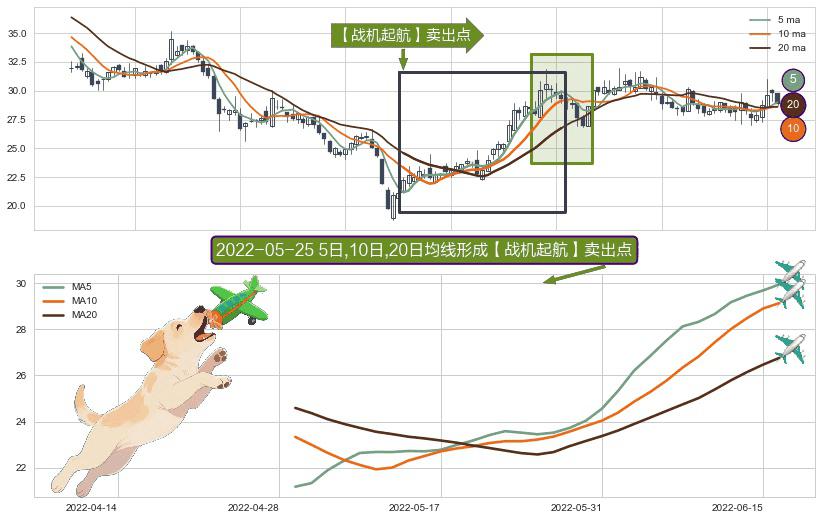 ⚀ 2022-04-29日-2022-06-16日显现 5日-10日-20日均线 【战机起航】卖出点 看空信号,后市看跌,卖出
