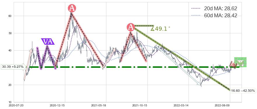 ♘ 阻力价格位30.39,可信任强度85.54%,距离最后交易2022-08-12形成的收盘价格28.87相差 +5.27%