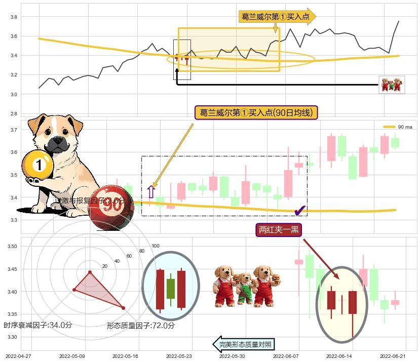 | 2 🅚:上涨两颗星 | 上涨三颗星 ➕ 🎢:葛兰威尔第①买入点买入点信号形成后,猜想后续下跌趋势反转上涨趋势(均值回复) ☞ 看多信号 ⇥ 【均线】交织【🅚线】⇥ 综合量化分数: 59 | > |