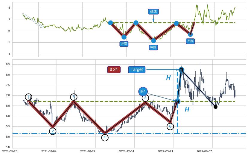 ➢ 【买1】: 激进型 买点 →(2022-03-28: 6.70 )形成突破三重底【反转】形态